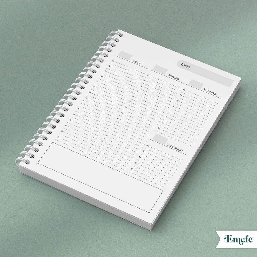 - Diagramación semanal por carilla, solo horizontal